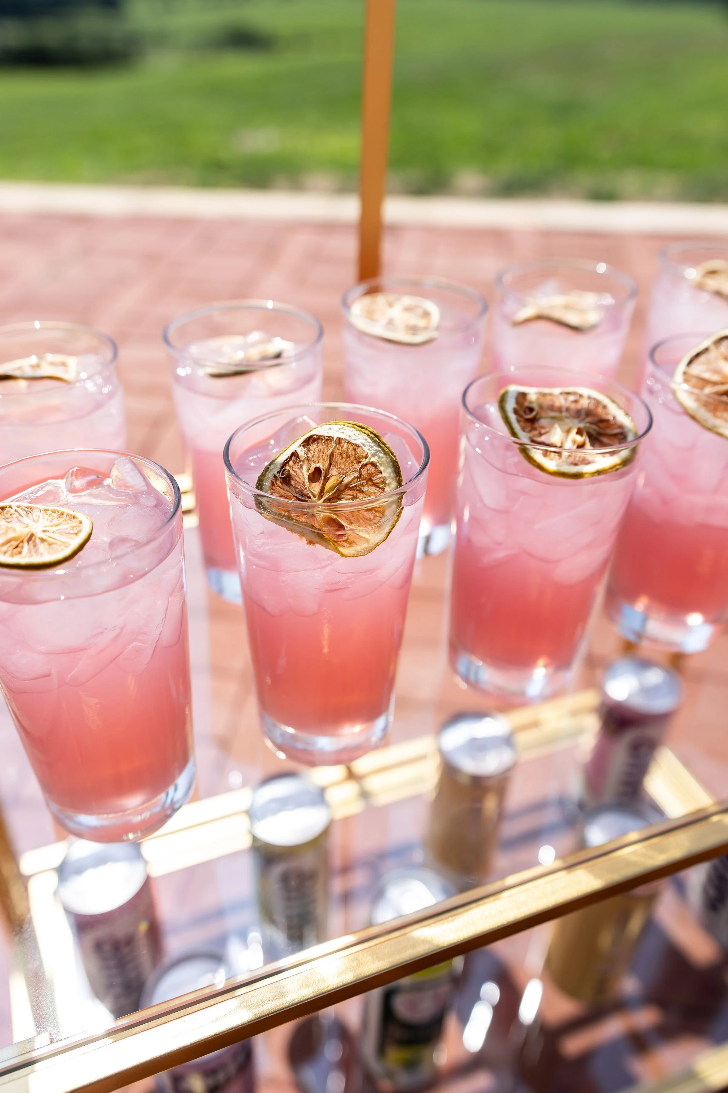 We offer a variety of customizable options to elevate your event, including drink stirrers, cocktail napkins, coasters, and even a drink pen that lets you imprint your event details or business name directly onto your beverages. You can also enhance the experience with passed drink service throughout your event or opt for a dedicated bartender to serve family tables at weddings for a more personal touch.